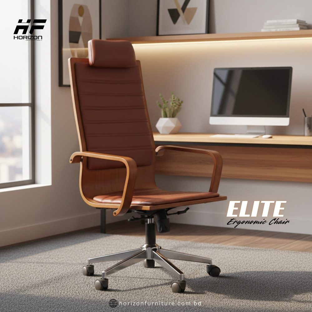 Constructed on a sturdy wooden frame and with a strong chrome-plated 5-star steel base, the Elite Chair is designed to withstand daily usage. The fixed wooden armrests are ergonomically shaped to perfectly fit the natural curve of the arm, relieve the strain of long hours’ work.